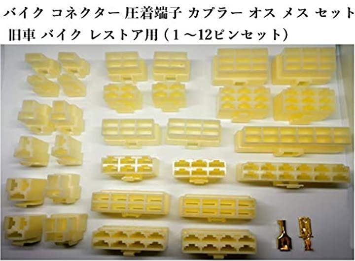 バイクコネクター圧着端子カプラーオスメスセット旧車バイクレストア用(1~12ピンセット)