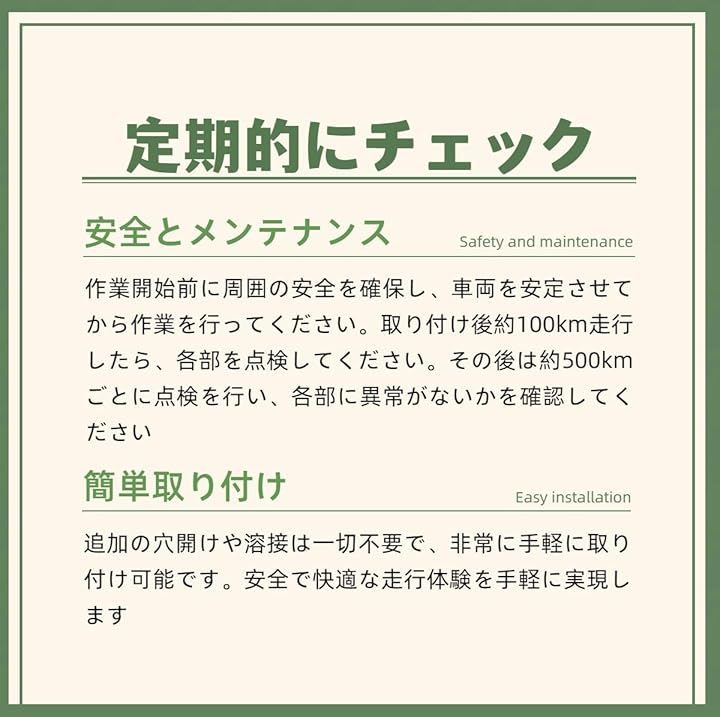 「簡単取り付け」追加の穴開けや溶接は一切不要で、非常に手軽に取り付け可能です。