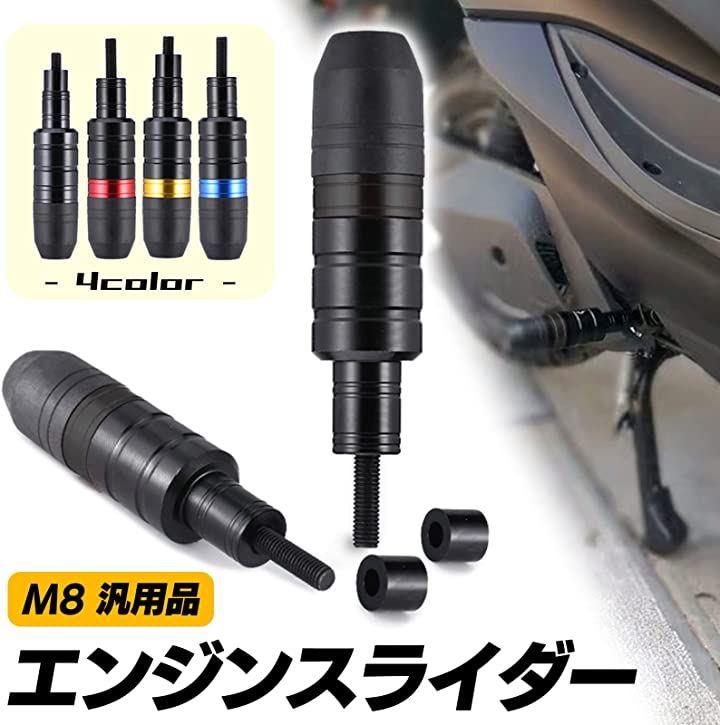 ・「本体サイズ」 約11.8cmx2.8cm (長さはワッシャで可変) 「ボルト」 M8 (8mm) 「仕様」 エンジンマウントに共締めで装着 「素材」 ABS+アルミベース 「付属数」 2本セット 「カラー」 ・ブラックxブラック ・ブラックxレッド ・ブラックxブルー ・ブラックxゴールド