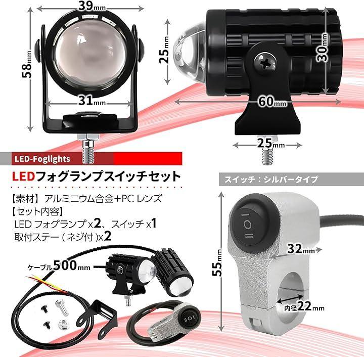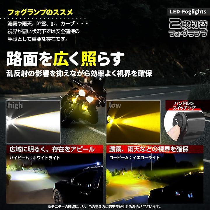 フォグランプ2個セット、スイッチ1個セットは、バイクのカスタムに最適。