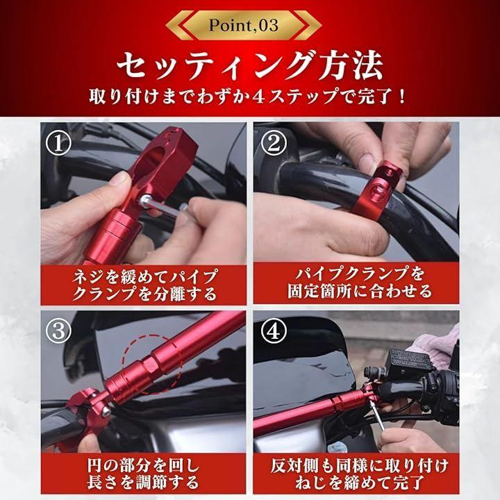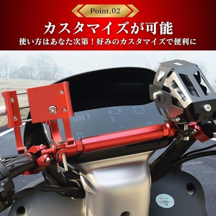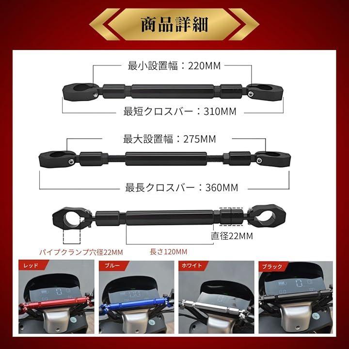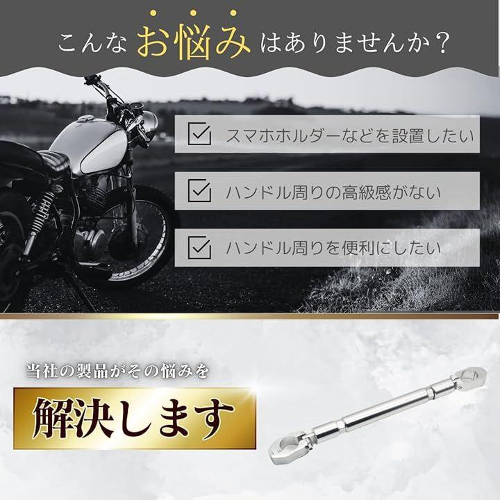 「商品概要」バイクに携帯ホルダーやLEDランプ、カメラ、レコーダーなどのアクセサリーを取り付けるためのクランプバーです。