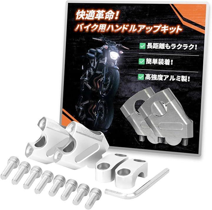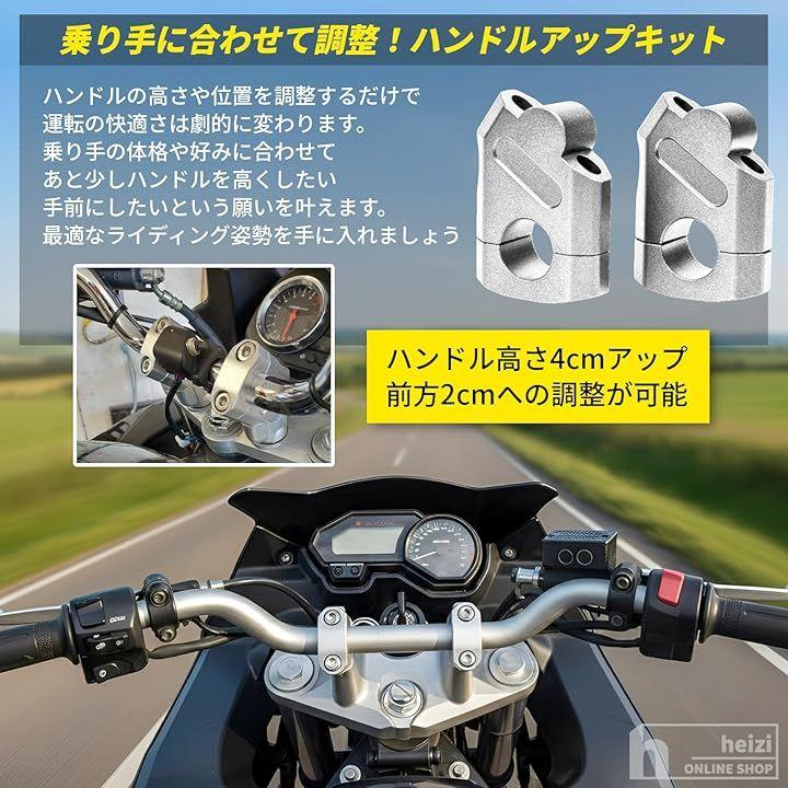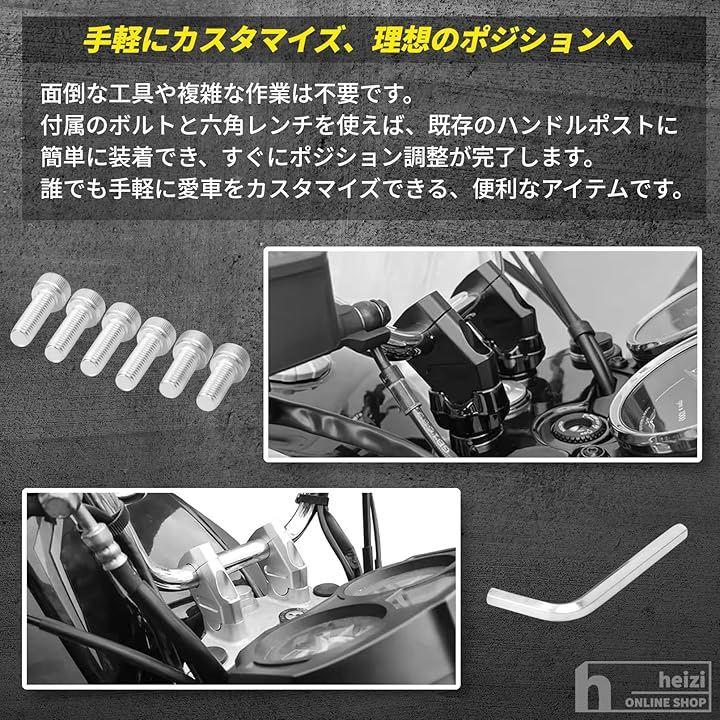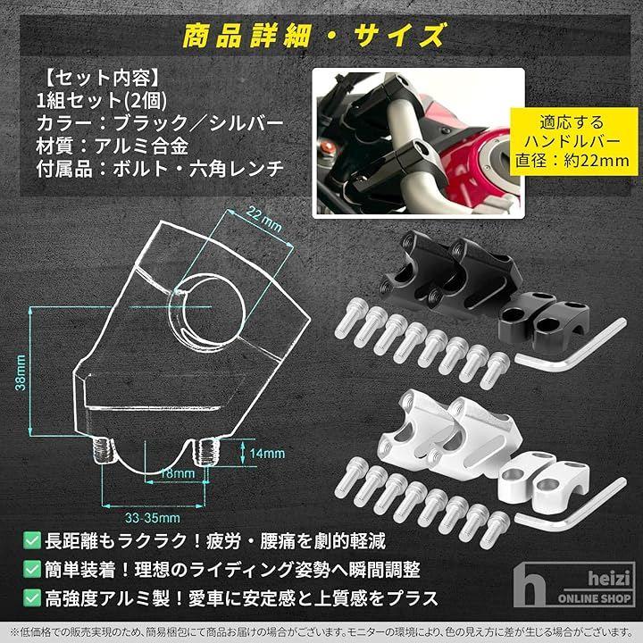 「商品内容」ライザー2個セット・カラー:ブラック/シルバー・適合ハンドル径:22mm・付属品:ボルト、六角レンチ・素材:アルミ合金
