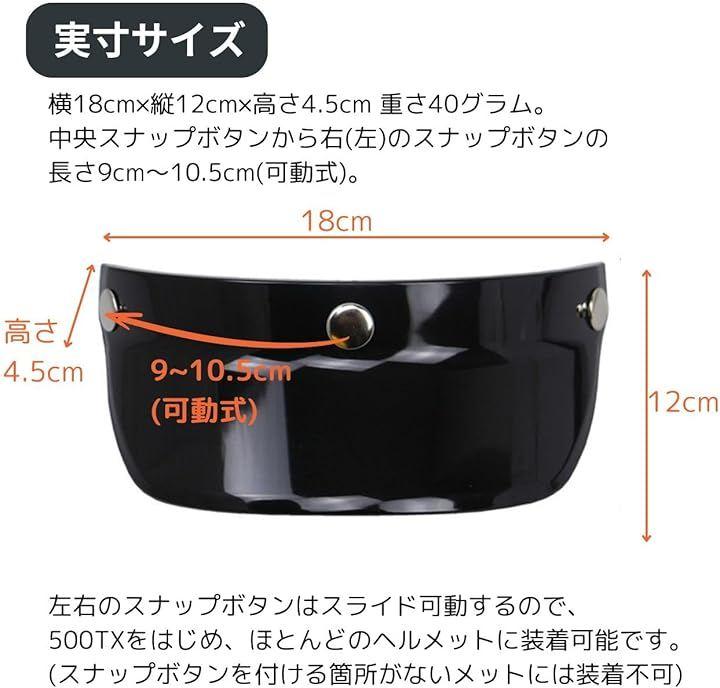 「汎用サイズ」左右のスナップボタンはスライド可動するので、500TXをはじめ、ほとんどのヘルメットに装着可能です。