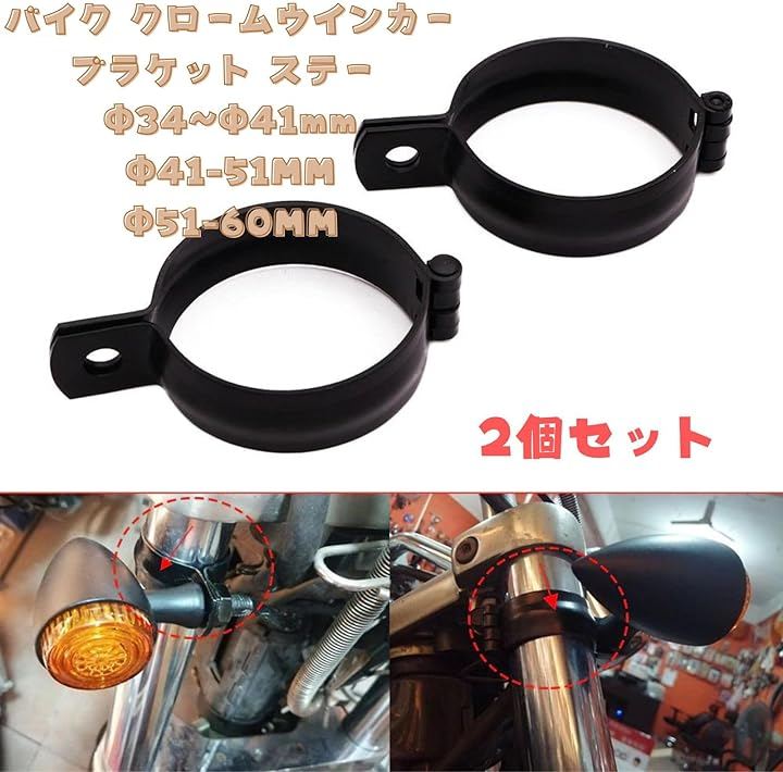 「多種車種対応」バイク クロームウインカー ブラケット ステー Φ51~Φ60mm対応2個セット。