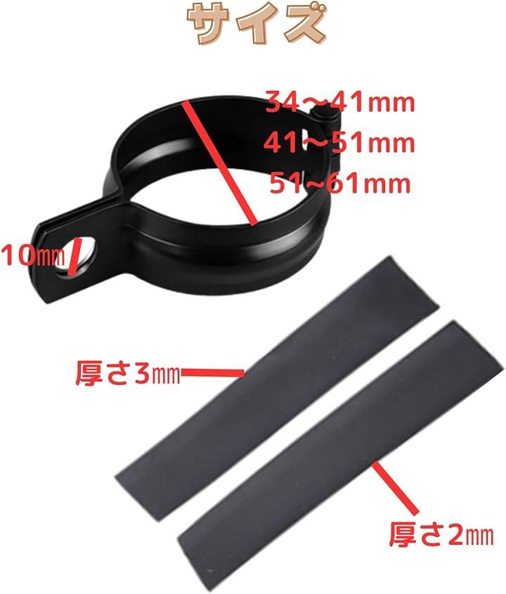 「ゴムストリップが付属」取り付けチューブとブラケットの摩耗や損傷を効果的に防止するためのゴムストリップが付属しています。