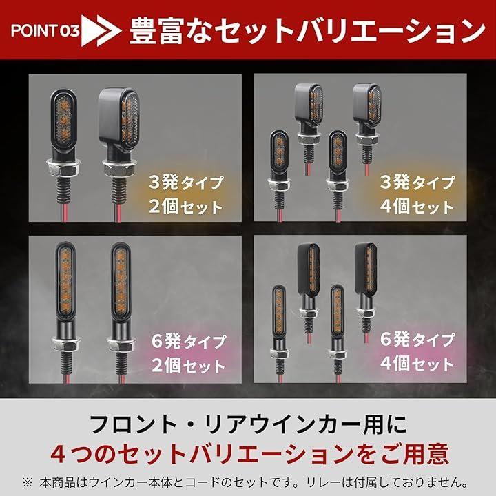 「愛車の個性を引き立てる。高視認性LEDバイクウインカー」あなたのバイクにさらなる安全性とスタイルをプラス。このLEDバイクウインカーは、スモークレンズとアンバー発光が特徴。
