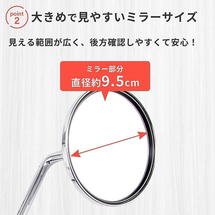 直径約10.5cm (ミラー部分 約9.5cm ) ロッドの長さ約13.5cm ベースの高さ約5.5cm (原付き などにあう 8mm ネジ 正ネジ )