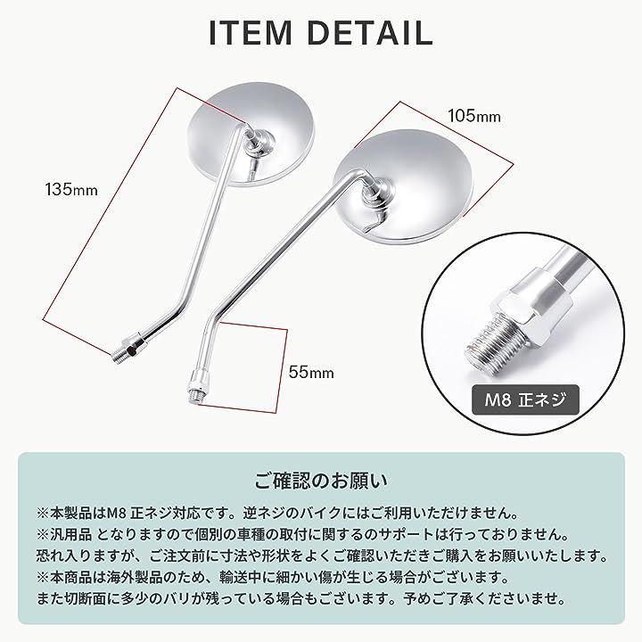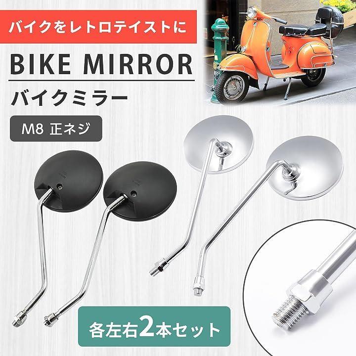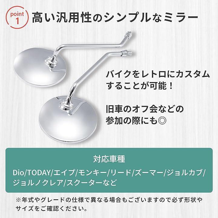 ・特徴: Dio や TODAY トゥデイ などにご利用できる シンプル で合わせやすい レトロな 丸型 の バイク ミラー 左右 セット ( M8 正ネジ ) です。