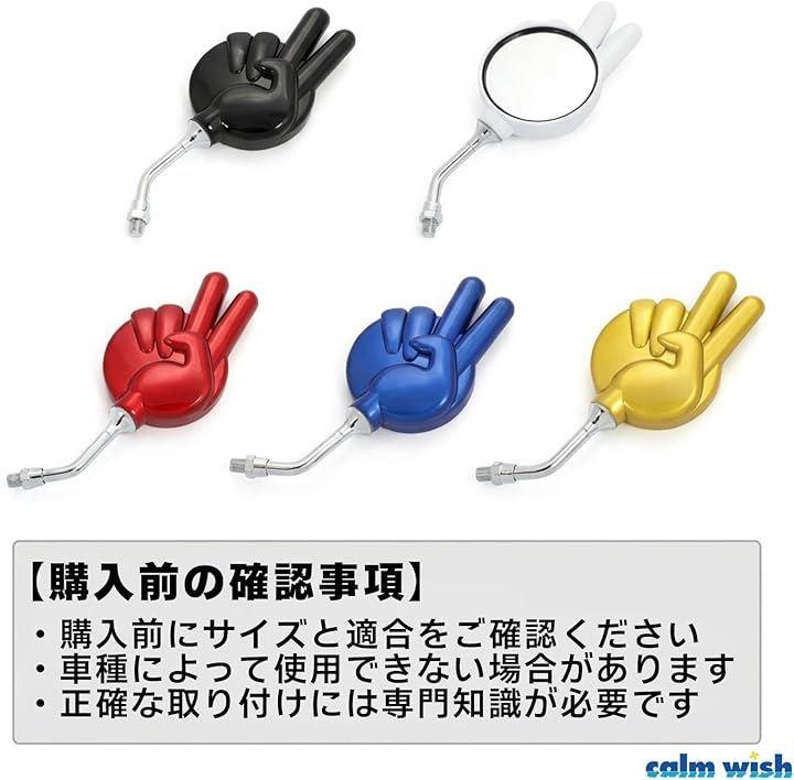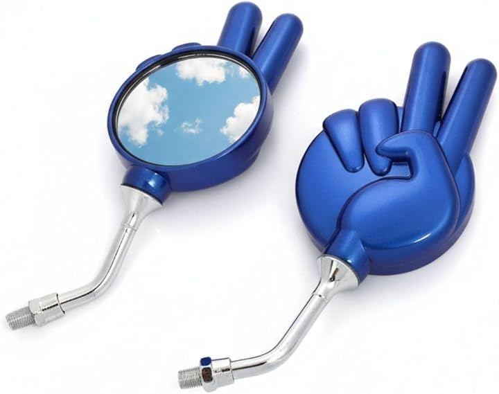 Motorcycle mirrors, rock-paper-scissors, peace sign design, left and right set, moped mountable, universal handlebar, M10/M8 right-hand and left-hand thread compatible