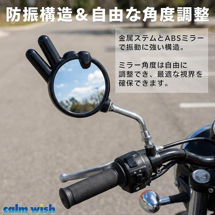 「じゃんけんピースサイン型で注目度抜群」ユニークな「じゃんけんピースサイン」デザインのバイクミラー。