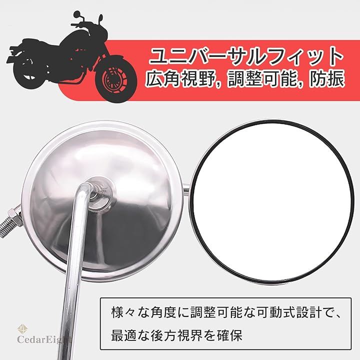 日常のライディングから長距離ツーリングまで、安全で快適な運転をサポートする信頼性の高いミラーセットです。