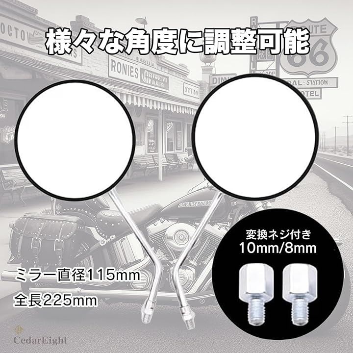 汎用性: 10mmネジ径で多くのオートバイに対応、左右セットで簡単に取り付け可能。