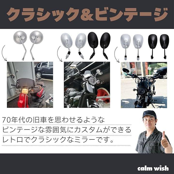 「高い互換性で多様な車種に対応」ホンダ、スズキ、カワサキなどの正ネジ10mmに対応しており、ネイキッドやアメリカンクルーザーなど幅広いバイクスタイルにマッチします。