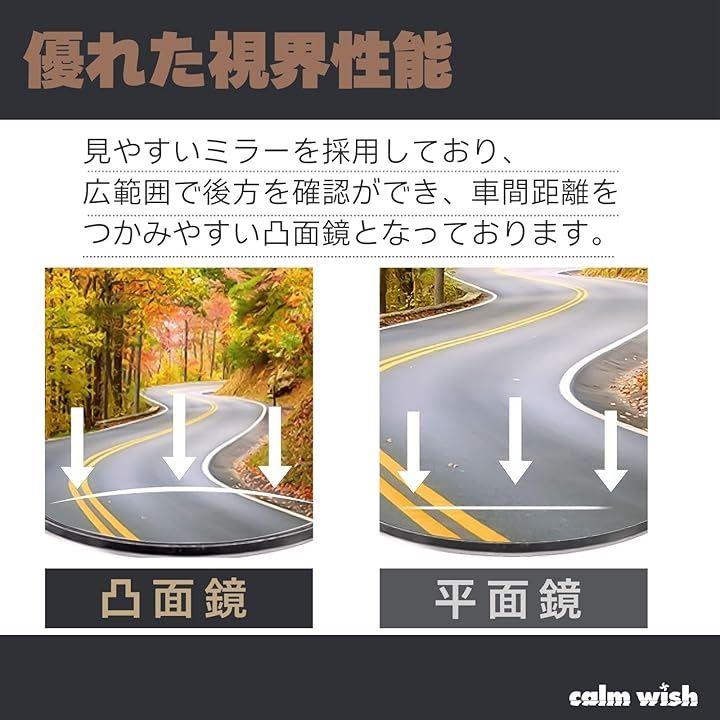 「広い視界で安全性の向上」凸面ミラーは広い視界を提供し、車間距離を分かりやすくすることでライディング時の安全性が向上します。