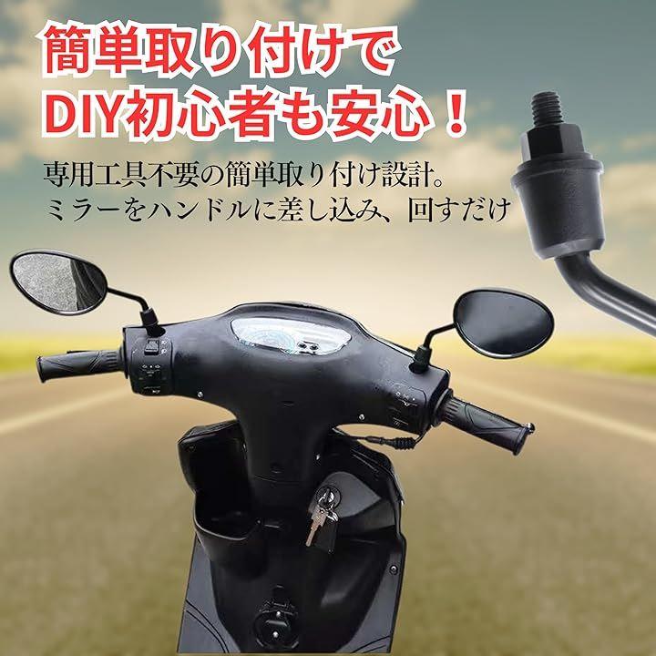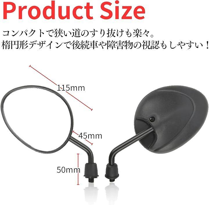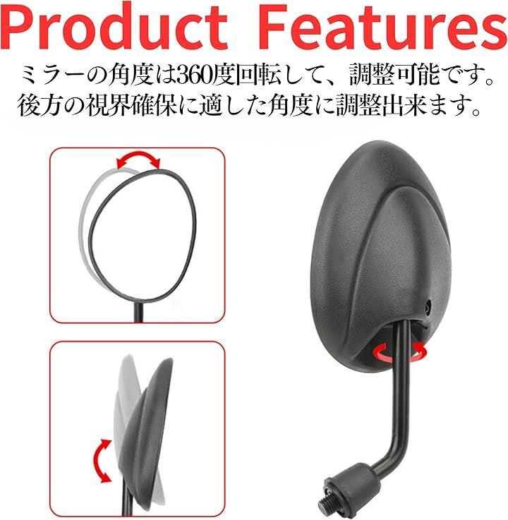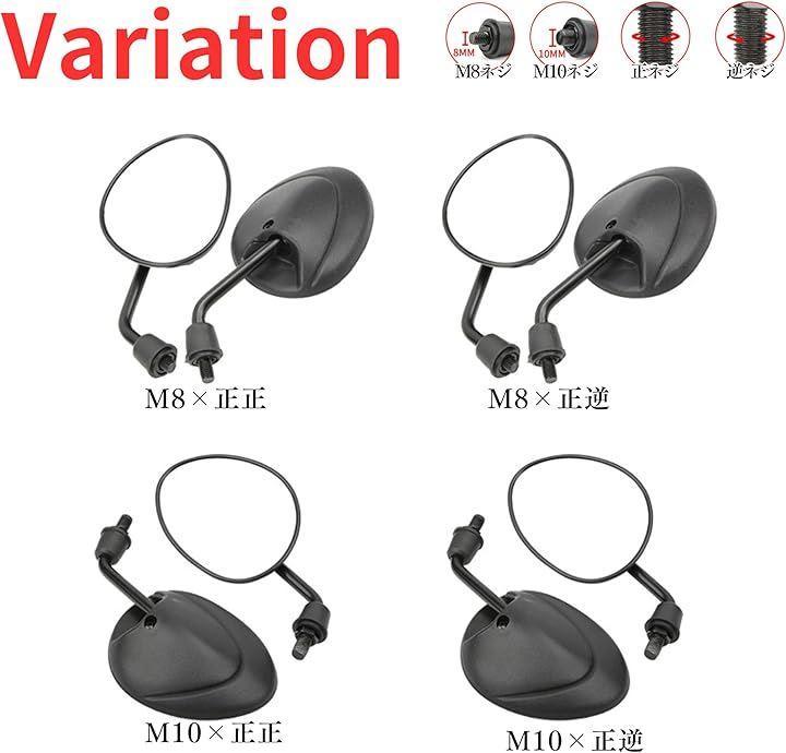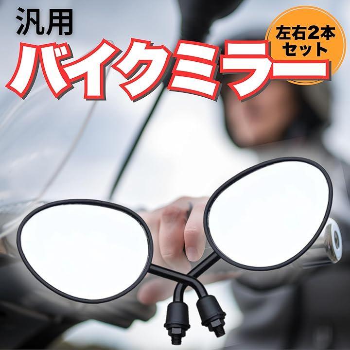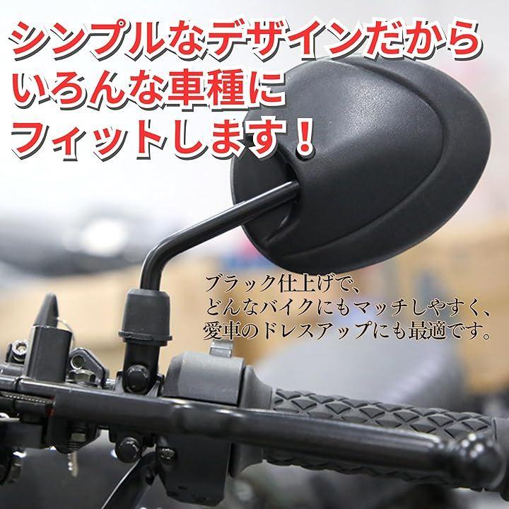 「汎用品で幅広い車種に対応」 M8、M10ネジ対応の汎用バイクミラーで、多くのバイク車種に適合。