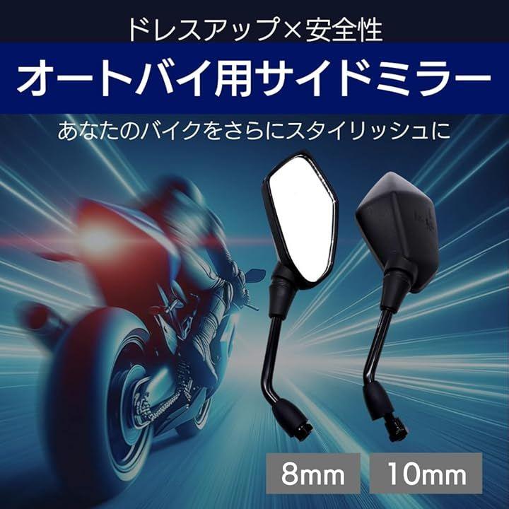 ブラックの洗練されたデザインが、どんなバイクにもマッチし、8mm、10mmのネジ形状にも対応する汎用性を持っています。