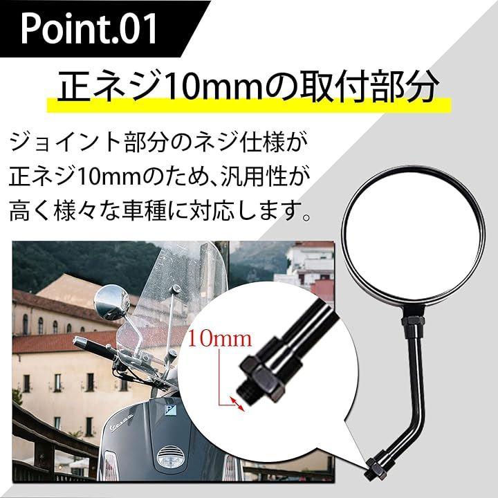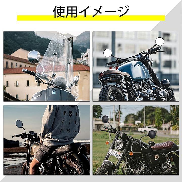スタイリッシュなデザイン:ブラックの丸型ミラーは、ネイキッドバイクにぴったりのシンプルで洗練されたデザインです。