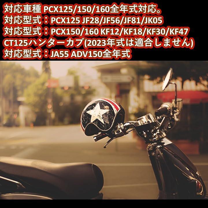 対応型式:PCX125 JF28/JF56/JF81/JK05 対応型式:PCX150/160 KF12/KF18/KF30/KF47CT125ハンターカブ(2023年式は適合しません) 対応型式:JA55 ADV150全年式