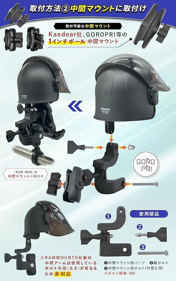 *詳細は商品ページを参照*中間マウント用ボルトに採用しているボルト規格は「M6」のため、RAMMOUNTS社製中間マウントには非対応となります。