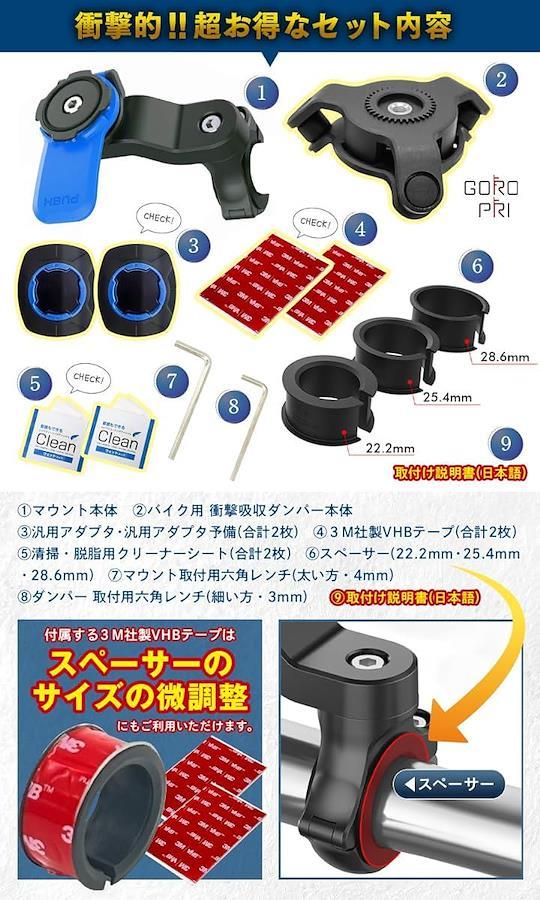 某海外有名ブランドが採用して有名となった装着方法を合法的に踏襲(特許庁のプラットフォームで調査済み)一度慣れてしまえばクセになること間違いなしハンドルバー、マウントステー、クランプバーに取付けるタイプ衝撃吸収ダンパー付き