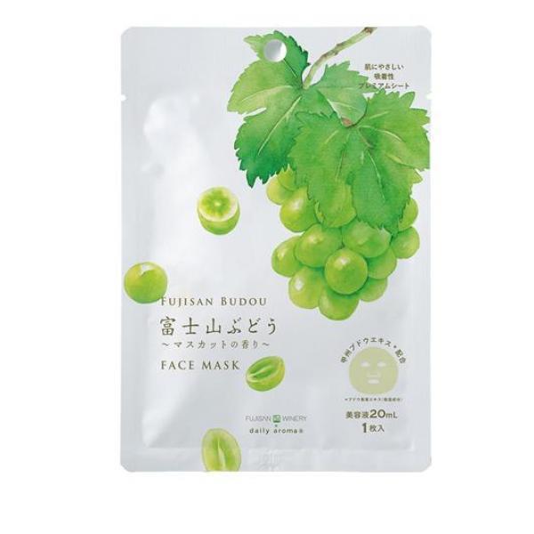 製品の特徴●デイリーアロマジャパン 富士山ぶどう フェイスマスク(DAJ FUJISAN BUDOU FACE MASK)●マスカットのような透明感のあるみずみずしいお肌へ導くフェイスマスク。●富士山に一番近いと称される「富士山ワイナリー」。自然豊かなこのワイナリーで育った「甲州ブドウ」からワインを製造する際にでるワインパミス(残渣)から独自に美容成分「甲州ブドウエキス(*)」を抽出配合。[*ブドウ果実エキス]●肌にやさしい吸着シートでお肌を包み込んで、マスカットのように透明感あふれるみずみずしいお肌に導きます。●果実感あふれるみずみずしいマスカットの香り。●1枚入り(美容液20mL)●フェイスパックシートマスク保湿スキンケア