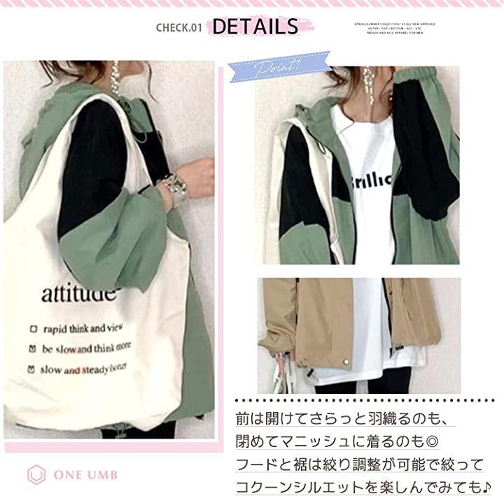 フードと裾は絞り調整が可能となっており、お好みで絞ってコクーンシルエットを楽しんでみても・ショート~ミドル丈くらいの程よい着丈感。
