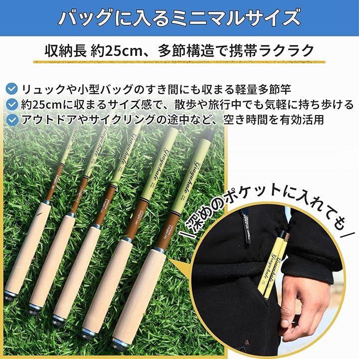 「携帯しやすい多節式のべ竿」多節構造で収納長は約25cmのコンパクトな竿です。