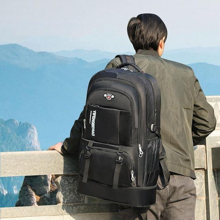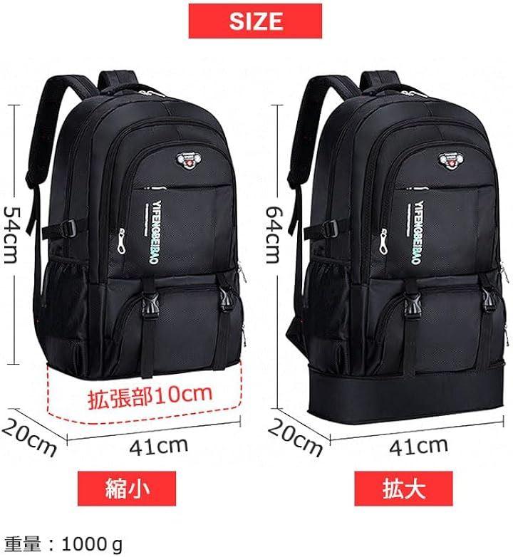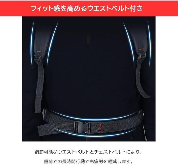 「最大65リットルに拡張可能なの大容量構造」 調節可能なストラップやベルト、多数のポケットがあり、大小さまざまな荷物を収納可能です。