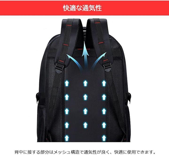 「快適な通気性」 背中と肩のベルト部分には厚手のクッション材が使われており、重い荷物でも負担を軽減できます。