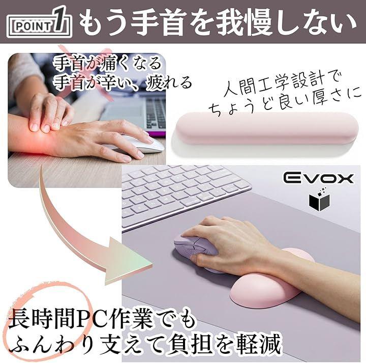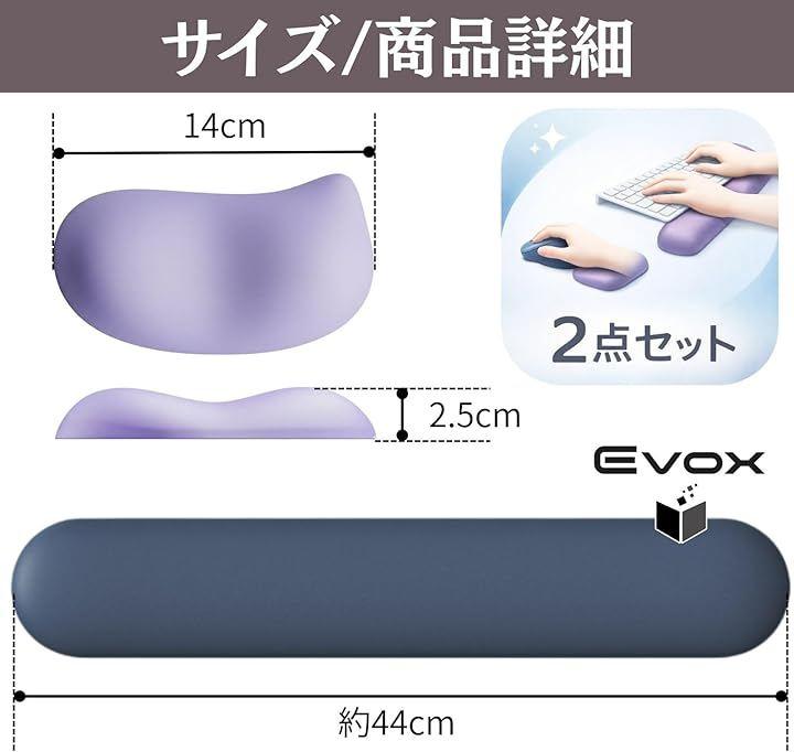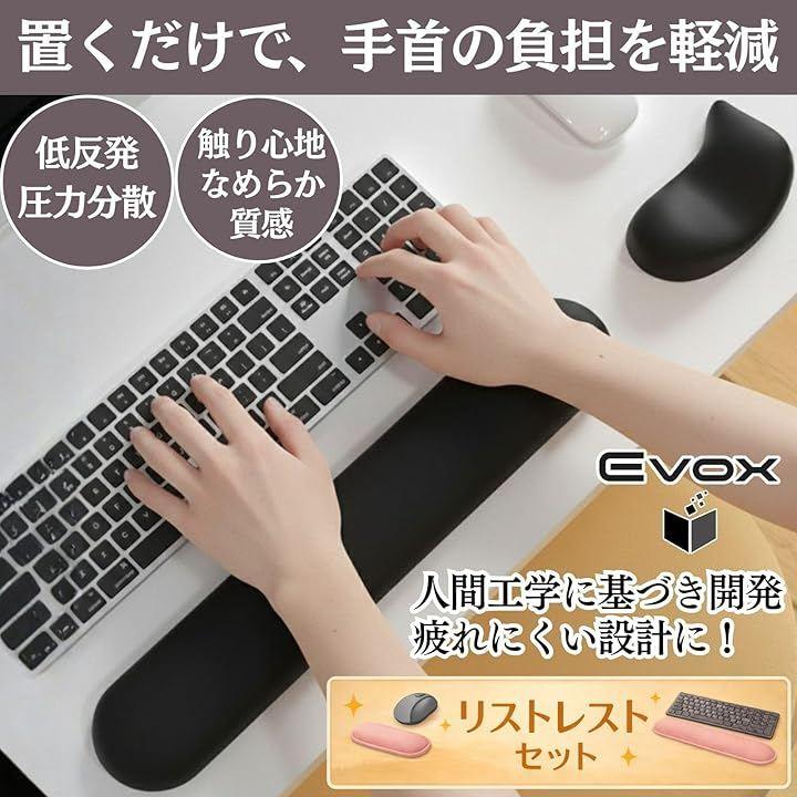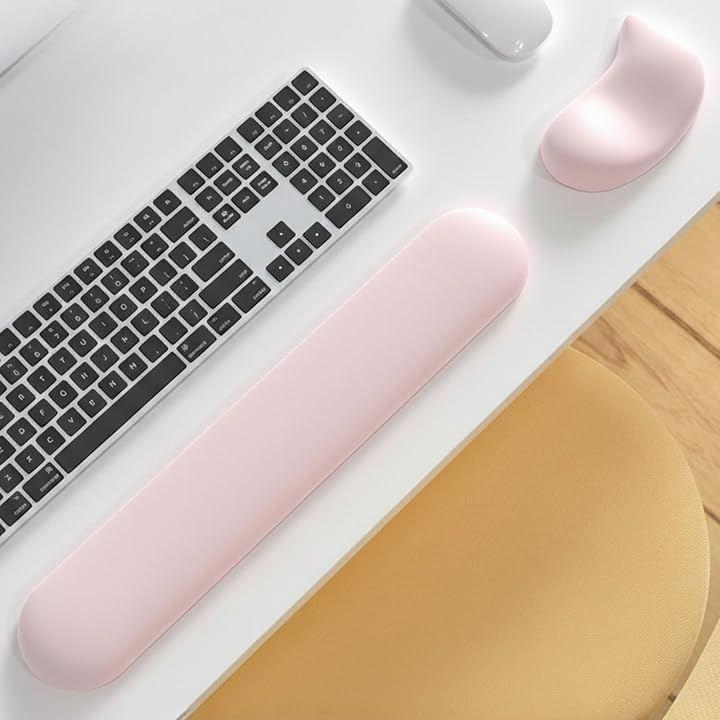人間工学デザインに基づいたこの2点セットは、底面に滑り止めを備え、フルサイズキーボードにフィットします。