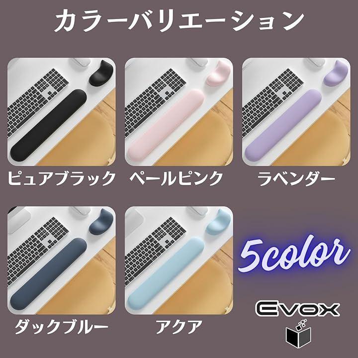 「サイズ/商品詳細」*リストレスト(マウス):長さ14cm、幅9cm、厚み2.5cm *リストレスト(キーボード):長さ44cm、幅8cm、厚み2cm *5カラー(アクア、ダックブルー、ラベンダー、ピュアブラック、ペールピンク)。