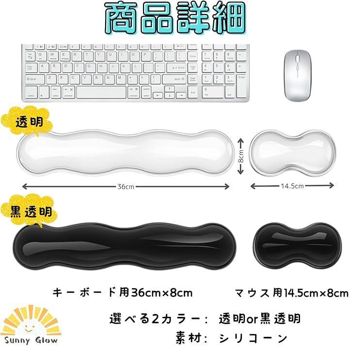 「商品詳細」サイズ:キーボード用36x8cm、マウス用14.5x8cm 素材:シリコーン