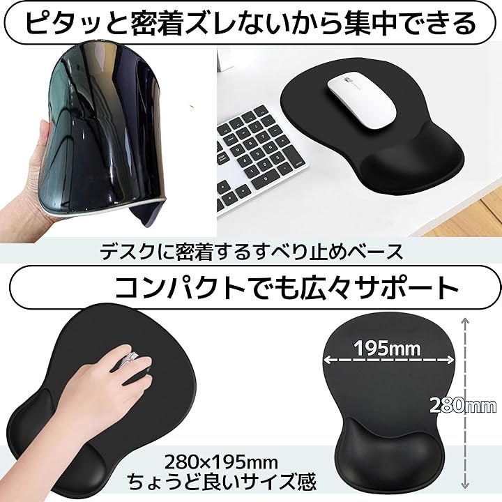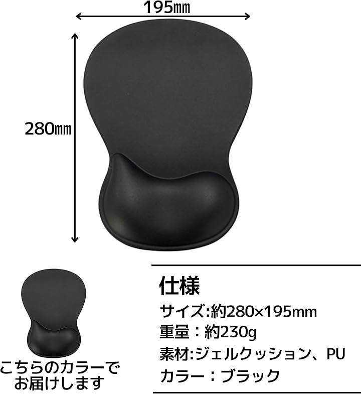 「仕様」 サイズ:約280x195mm|重量:約230g|ジェルクッション、PU|カラー:ブラック