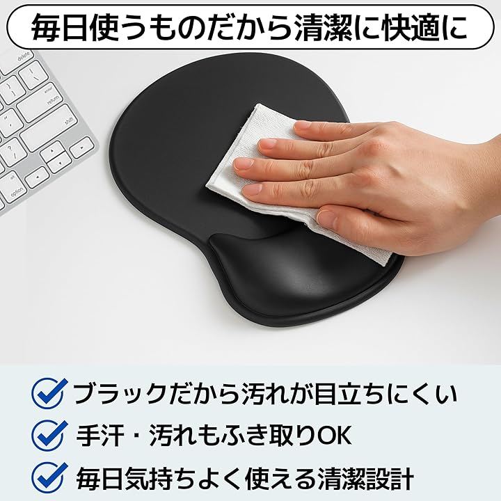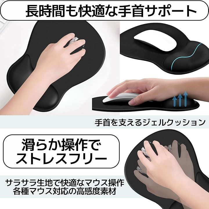 「手首の負担を減らす設計」手首部にジェルクッションを充填。