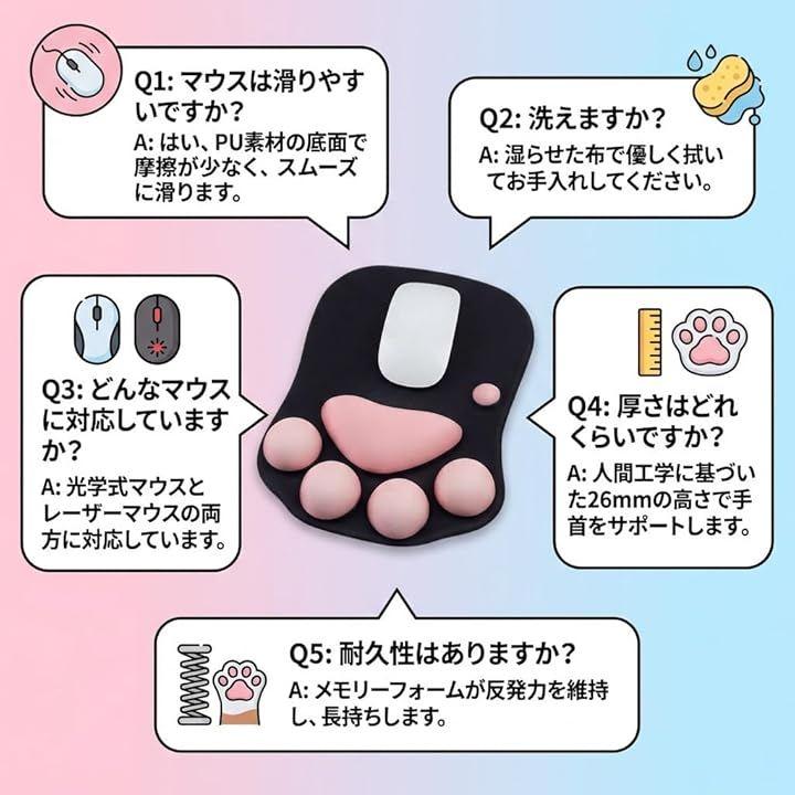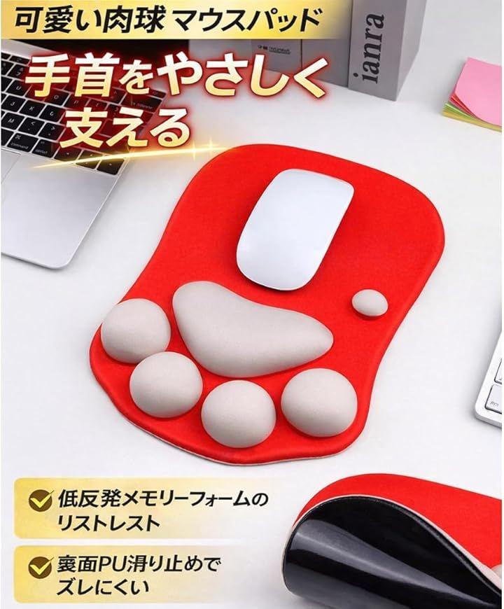 かわいい肉球デザインと手首サポート機能を兼ね備えたマウスパッドです。