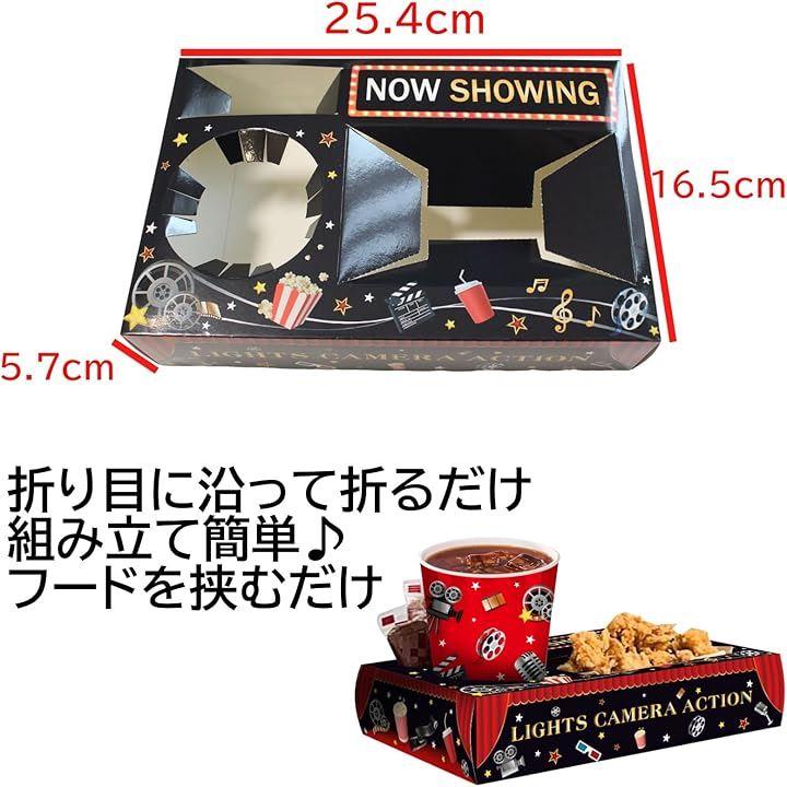 使い捨てなので洗う必要もなく、折りたたみ式の紙ボックスなので、場所もとらず手軽で衛生的に映画を鑑賞中に飲食することができます。