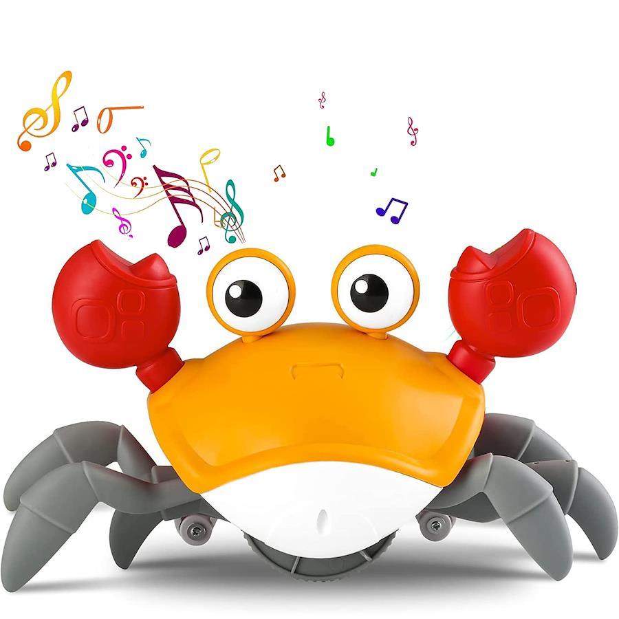 Moving Crab Toy for Kids, Musical Crawling Crab, Automatically Avoids Obstacles, Interactive Learning and Development, with LED Lights, USB Rechargeable Educational Toy