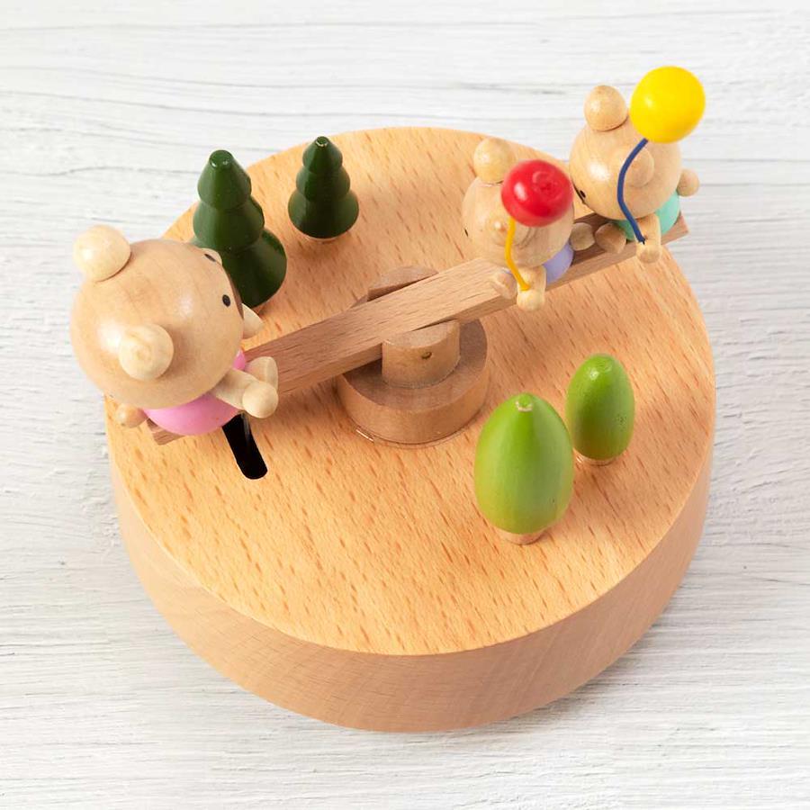 オルゴール以外はすべて木製で作られた回転オルゴール。手触りがよく温もり感じる木の装飾はただ飾られてるだけでなく、オルゴールを鳴らす事で一緒に回転する仕様。