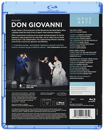 ヴォルフガング・アマデウス・モーツァルト(1756?1791): 歌劇《ドン・ジョヴァンニ》2幕のドランマ・ジョコーソ台本: エマヌエル・シカネーダー(1749?1838)ドン・ジョヴァンニ…アーウィン・シュロット(バリトン)騎士長…ペトロス・マゴウラス(バス)ドンナ・アンナ…マリン・ビストレム(ソプラノ)ドン・オッターヴィオ…ダニエル・ベーレ(テノール)ドンナ・エルヴィーラ…ミルト・パパタナシユ(ソプラノ)レポレッロ…ロベルト・タリアヴィーニ(バス)ツェルリーナ…ルイーズ・オルダー(ソプラノ)マゼット…レオン・コシャヴィッチ(バス)ドンナ・エルヴィーラの小間使い…ジョセフィーヌ・アーデン(俳優)農民たち、召使たち、地下からの合唱、楽士たちコヴェント・ガーデン王立歌劇場管弦楽団&合唱団(合唱指揮: ジェネヴィーヴ・エリス)指揮: ハルトムート・ヘンヒェン演出: カスパー・ホルテン再演演出: ジャック・ファーネス舞台美術: エス・デヴリンビデオ・デザイン: ルーク・ホールズ衣装: アーニャ・ヴァン・クラフ照明: ブルーノ・ポエト振付: シーニュ・ファブリシウス再演振付: アンナ=マリー・サリヴァン闘技指導: ケイト・ウォーターズ再演闘技指導: アニー・リース=ジョーンズ映像監督: ジョナサン・ハスウェル収録: 2019年9月25日、10月8日コヴェント・ガーデン王立歌劇場(ロンドン)収録時間: 178分(本編)+9分(特典映像)【特典映像】- なぜロイヤル・オペラはドン・ジョヴァンニの上演を愛するのか- アーウィン・シュロットがドン・ジョヴァンニを演ずるための準備音声: イタリア語PCMステレオ2.0/DTS-HD Master Audio 5.1(Blu-ray)字幕(本編・特典映像):日本語・英語・フランス語・ドイツ語・イタリア語・韓国語画角:16/9 NTSC All RegionBlu-ray・・・片面二層ディスク 1080i High Definition【オーパス・アルテ創立20周年記念リリース第2弾 アーウィン・シュロット主演《ドン・ジョヴァンニ》】騎士長の娘ドンナ・アンナの部屋に忍び込んだ好色な貴族ドン・ジョヴァンニは、騎士長と決闘になり彼を殺害して逃走。ドンナ・アンナは婚約者のドン・オッターヴィオに父の復讐を求めます。当のジョヴァンニは従者のレポレッロを従え、復縁を迫る昔の愛人ドンナ・エルヴィーラからも逃げ出し、さらに婚礼の宴の新婦の村娘ツェルリーナを口説くのでした…好色な貴族が、享楽の限りを尽くした末に地獄へ落ちる…。中世から存在していた伝説を基に誕生したのが、この歌劇《ドン・ジョヴァンニ》。この映像は2014年にプレミエ上演され好評を博したカスパー・ホルテンの名演出の再演です。大胆なプロジェクション・マッピングの多用や、回り舞台を使った巧みな空間処理と並び、登場人物たちの細やかな性格描写が見どころです。ドン・ジョヴァンニを歌うのは、アーウィン・シュロット。欲望の限りを尽くした結果、深い絶望の淵に立たされてゆく迫真の演技と絶妙な歌唱が聴きものです。ドン・ジョヴァンニを巡る3人の女性に、ドンナ・アンナ役のマリン・ビストレム、ドンナ・エルヴィーラ役のミルト・パパタナシュ、ツェルリーナ役のルイーズ・オルダーら強い個性と存在感溢れる歌手を配し、シュロットと丁々発止の演技と歌が繰り広げられます。モーツァルトをはじめとする古典派の作品に深い造詣を示し、オペラならではの聞かせどころを熟知した、ハルトムート・ヘンヒェンのタクトがこの作品に示される目まぐるしく移ろう男女の心理の綾を、精緻かつ鮮烈に描きだしています。