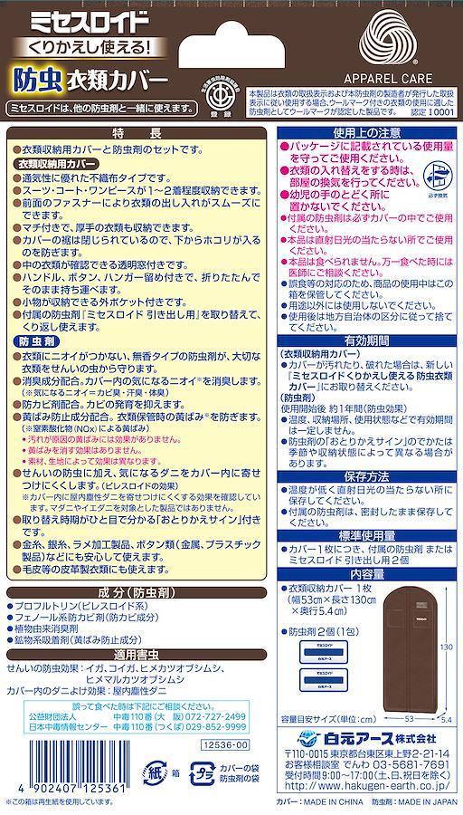 商品サイズ (幅×奥行×高さ) :15cm×7cm×25.5cm内容量:カバー1枚 防虫剤2個