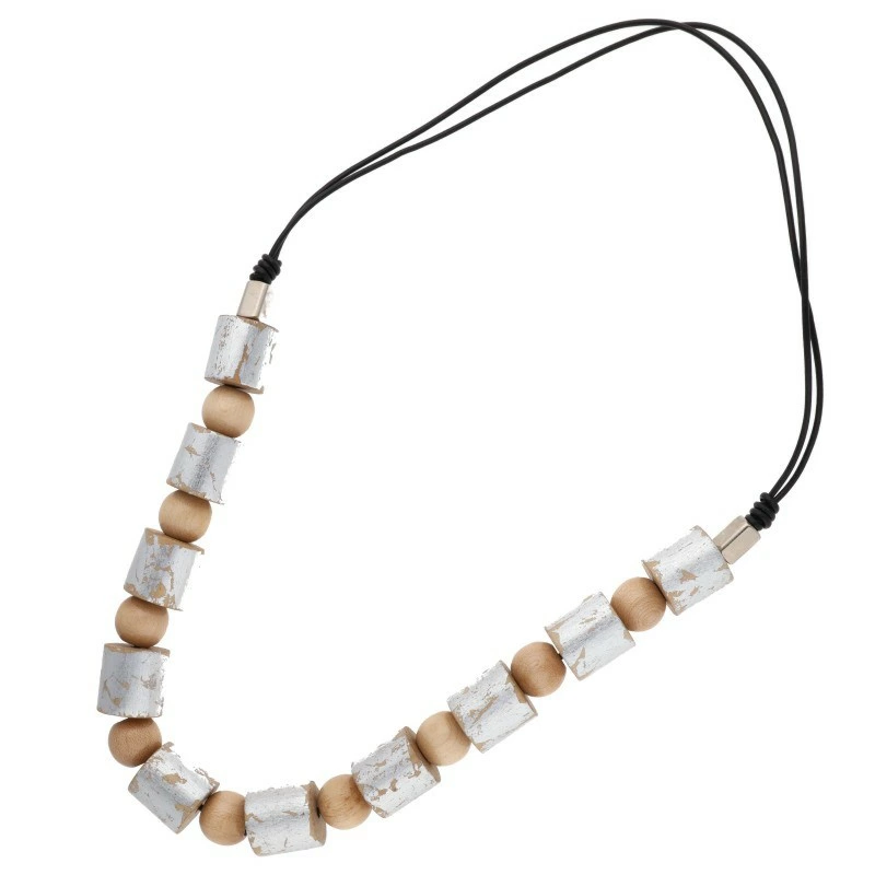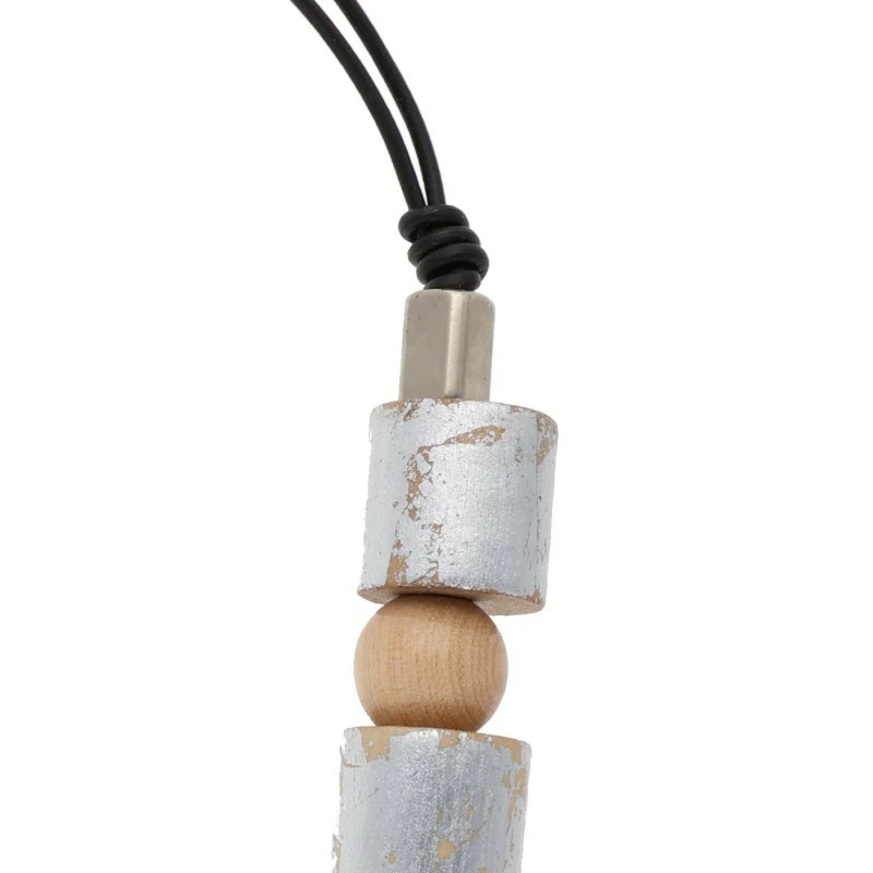 M's Black ms blaque <br> LEATHER CORD WOOD NECKLACE Leather Cord Wood Necklace (Silver x Beige 60.88g) [214062] [BS99] [Accessories] [Used] bb187#rinkan*S