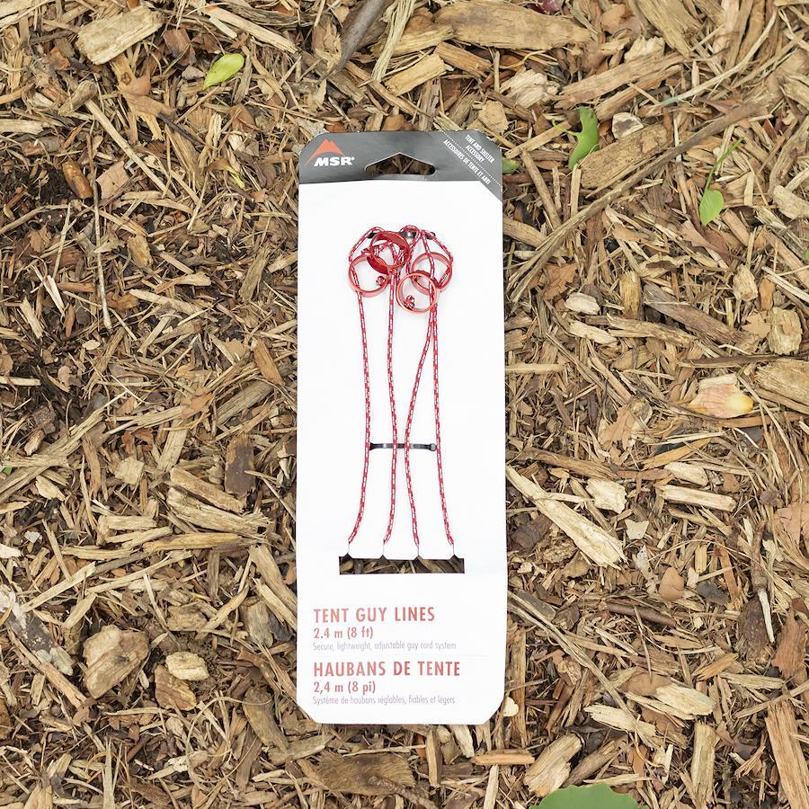 軽くて滑りにくいデザインの2.4mのガイライン4本とカムリングコードテンショナー4個のセットです。