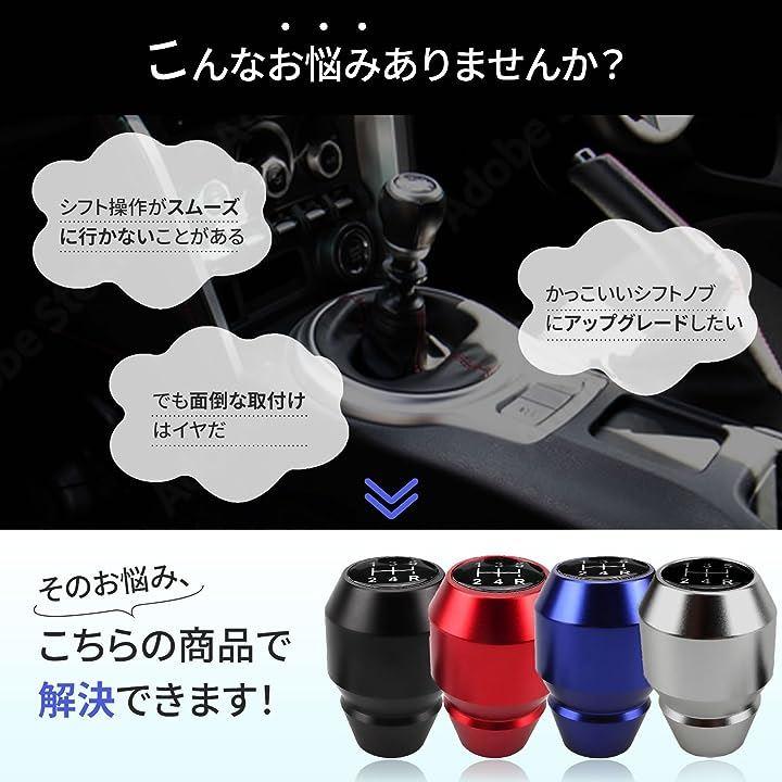 ・運転をより楽しく: スポーティー な アルミ シフトノブ は、約250gと適度な重さで、シフト操作がいつもよりスムーズになることが期待できます。