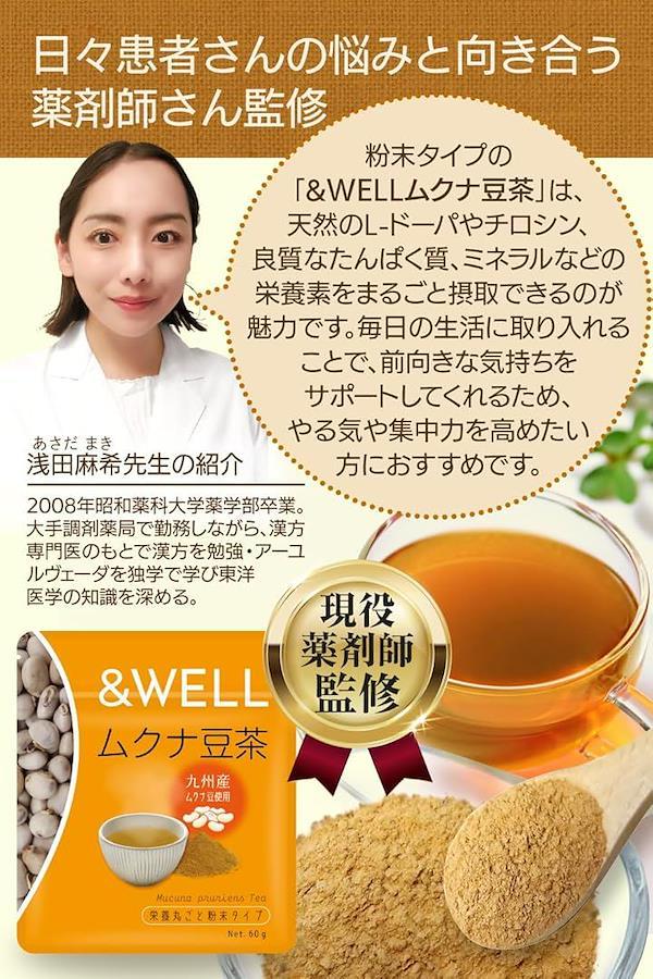 「現役薬剤師監修・栄養まるごと粉末茶」九州産の厳選したムクナ豆を皮ごと焙煎し、素材をまるごといただけるよう微粉砕しました。