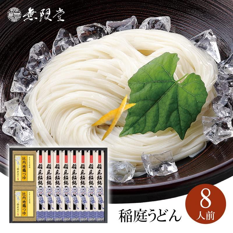 通常1-5営業日で発送商品の説明 --仕込みから乾燥まで3日間かけて、丹精を込めて仕上げられた稲庭うどん-- ●年間400万食を超える出荷実績を持つ稲庭饂飩 無限堂 ◇伝統製法手綯秘法と完熟製法で造られた麺は、美味しい稲庭うどんを召し上がって欲しいという想いがたっぷり詰まっいます。◇ 日本三大銘うどんに数えられる「稲庭うどん」。(ほかには香川の讃岐うどん、名古屋のきしめん) ・透明感のある色合いに茹で上がり、滑らかな舌触り、とツルッとした喉ごしの良さは他のうどんでは他のうどんには無い大きな特徴です。 無限堂の稲庭うどんは 稲庭うどんの特徴・美味しさをたっぷり堪能、そして素材の良さが染み出る旨みをお楽しみ頂けます。 原材料・成分 稲庭うどん(小麦粉、食塩、でん粉)、比内地鶏つゆ[しょうゆ(本醸造)、砂糖、食塩、チキンエキス、たん白加水分解物、発酵調味料、かつおエキス、そうだぶし、酵母エキス、しいたけエキス、酒精、調味料(アミノ酸等)、カラメル色素、酸味料、くん液、(原材料の一部に小麦、大豆を含む)] 使用方法 高温多湿を避け、常温にて保管【重要】メーカーによる商品リニューアルに伴いパッケージ(内容量も含む)変更が行われた場合、新パッケージでお届け致します事ご了承願います。