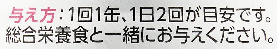 1回1缶、1日2回が目安です。総合栄養食と一緒にお与えください。