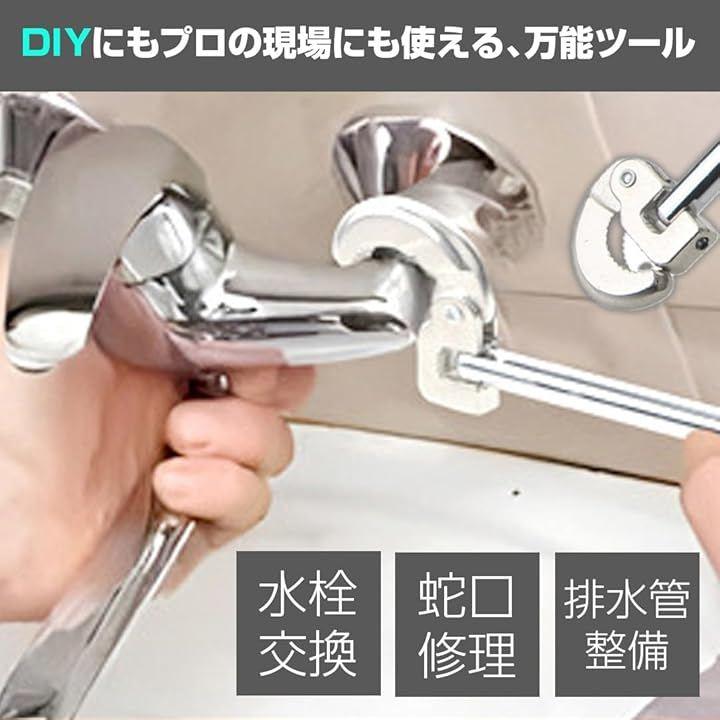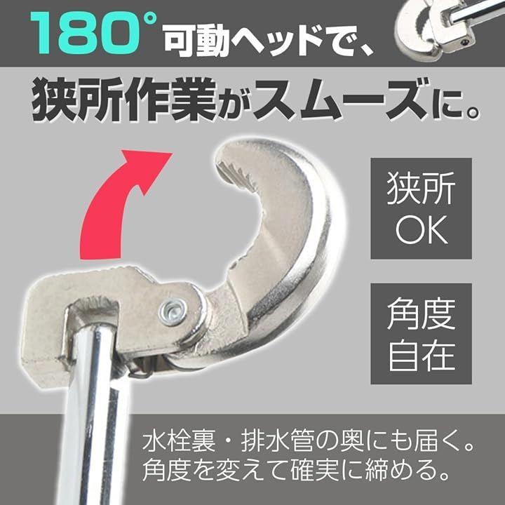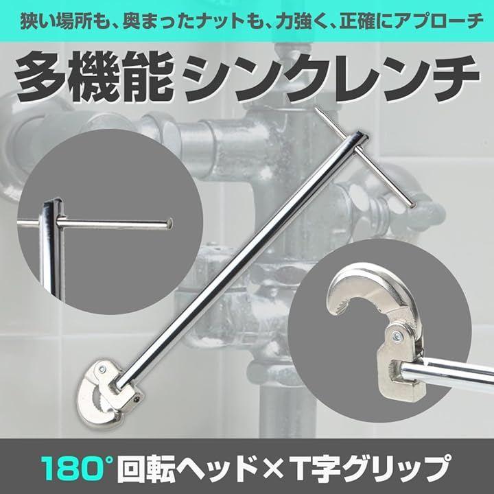 狭い場所での蛇口交換や水栓修理に最適な多機能シンクレンチです。