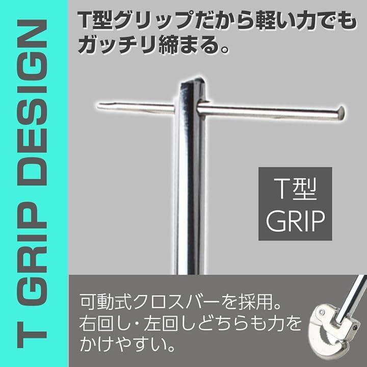 全長約30cmのT字構造と滑り止めグリップにより、力をかけやすく、右回し・左回しの両方向に対応しています。