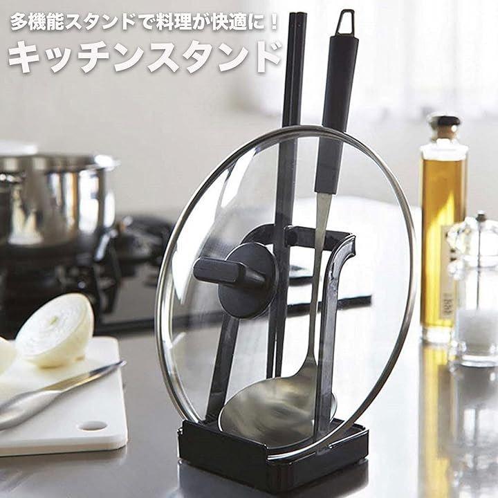 「商品説明」鍋ふたやおたま、菜箸、まな板、タブレットやレシピ本まで置ける多機能キッチンスタンドです。