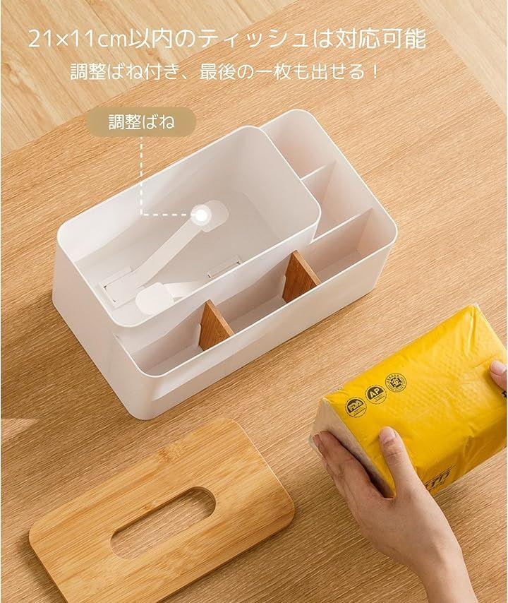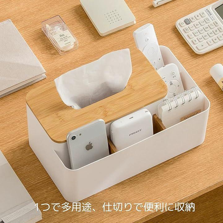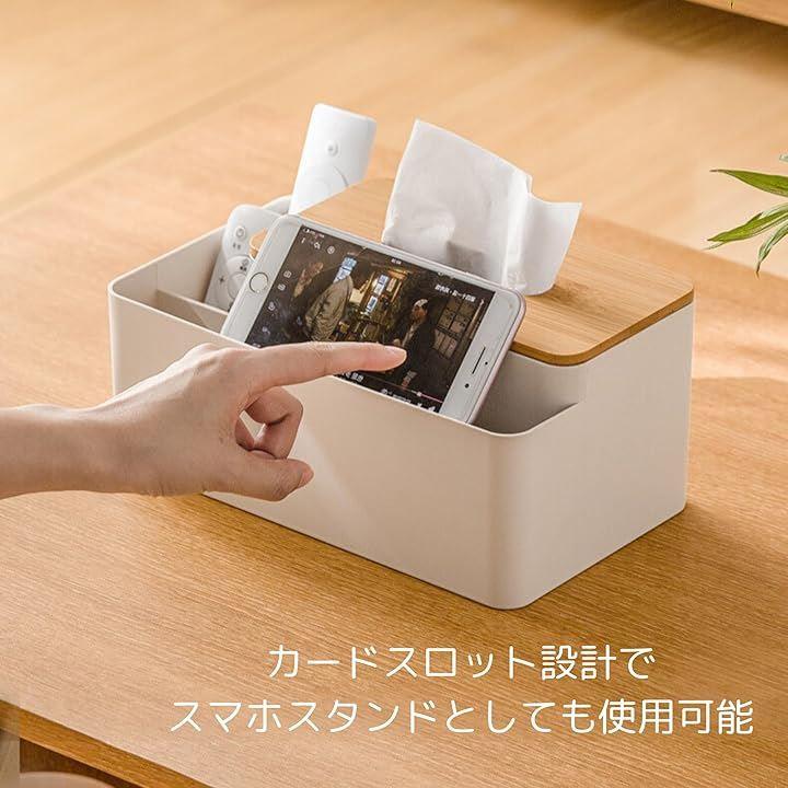 「多機能収納」このティッシュケースは、ティッシュだけでなくリモコンやスマホ、小物もすっきり収納。